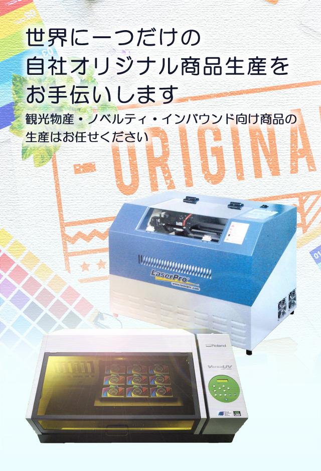 最新のUVプリンターとレーザー加工機を駆使して商品を製造しています。これにより複雑なデザインや高精度な画像や加工を実現し、お客様の多様なニーズに応えることができます。
